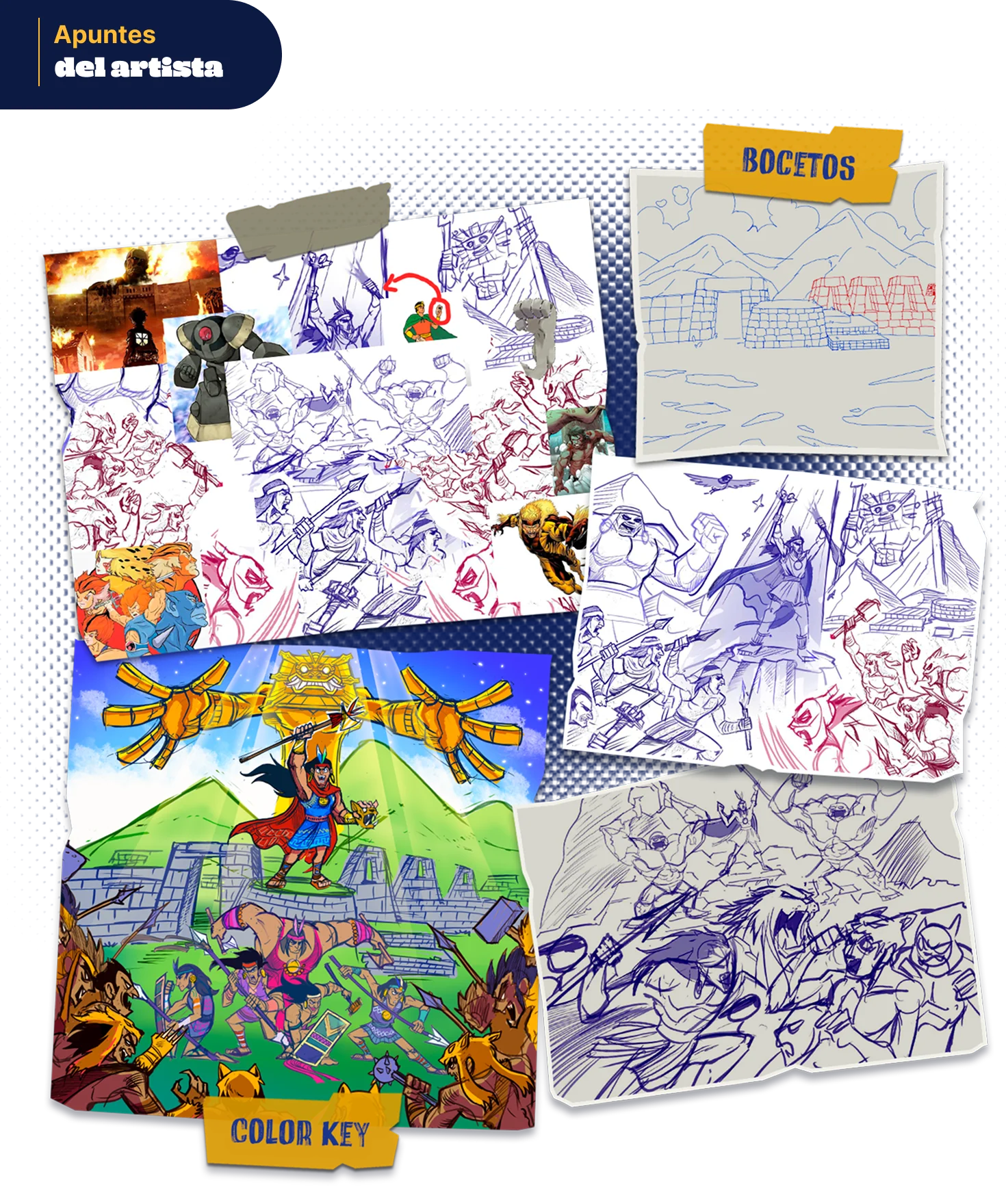 En esta escena, quise crear ese suspenso de “¡ya fue, no la contamos!”, con un puñado de guerreros incas rodeados por un ejército chanca que parecía multiplicarse como si fueran NPCs infinitos en modo difícil. Pero, plot twist: Pachacútec no se rinde y pide ayuda a Wiracocha, quien manda titanes de piedra gigantes para equilibrar fuerzas con los guerreros chanca. Todo es tensión pura, el momento exacto antes de que explote la batalla final… ¡y no solo dioses y humanos están en juego! Entre lanzas, oraciones y colosos, hay un héroe inesperado: un pollito valiente. 👀 ¿Lo encontraste?