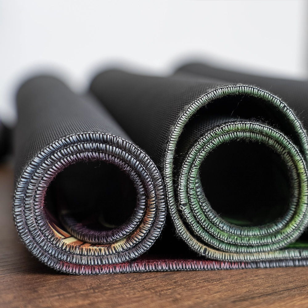 Mousepad gamer XL de 90x40cm con borde cosido, sublimado en neopreno textil antideslizante.