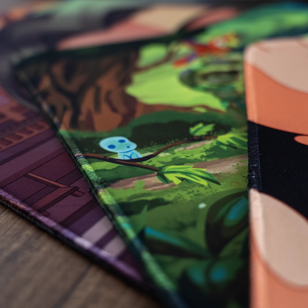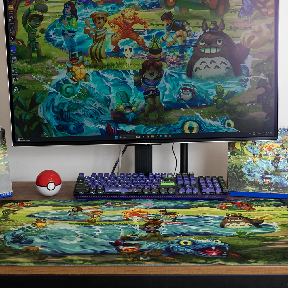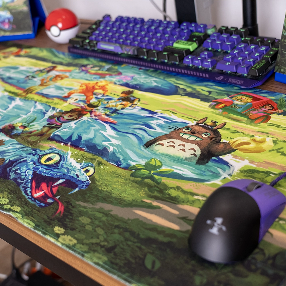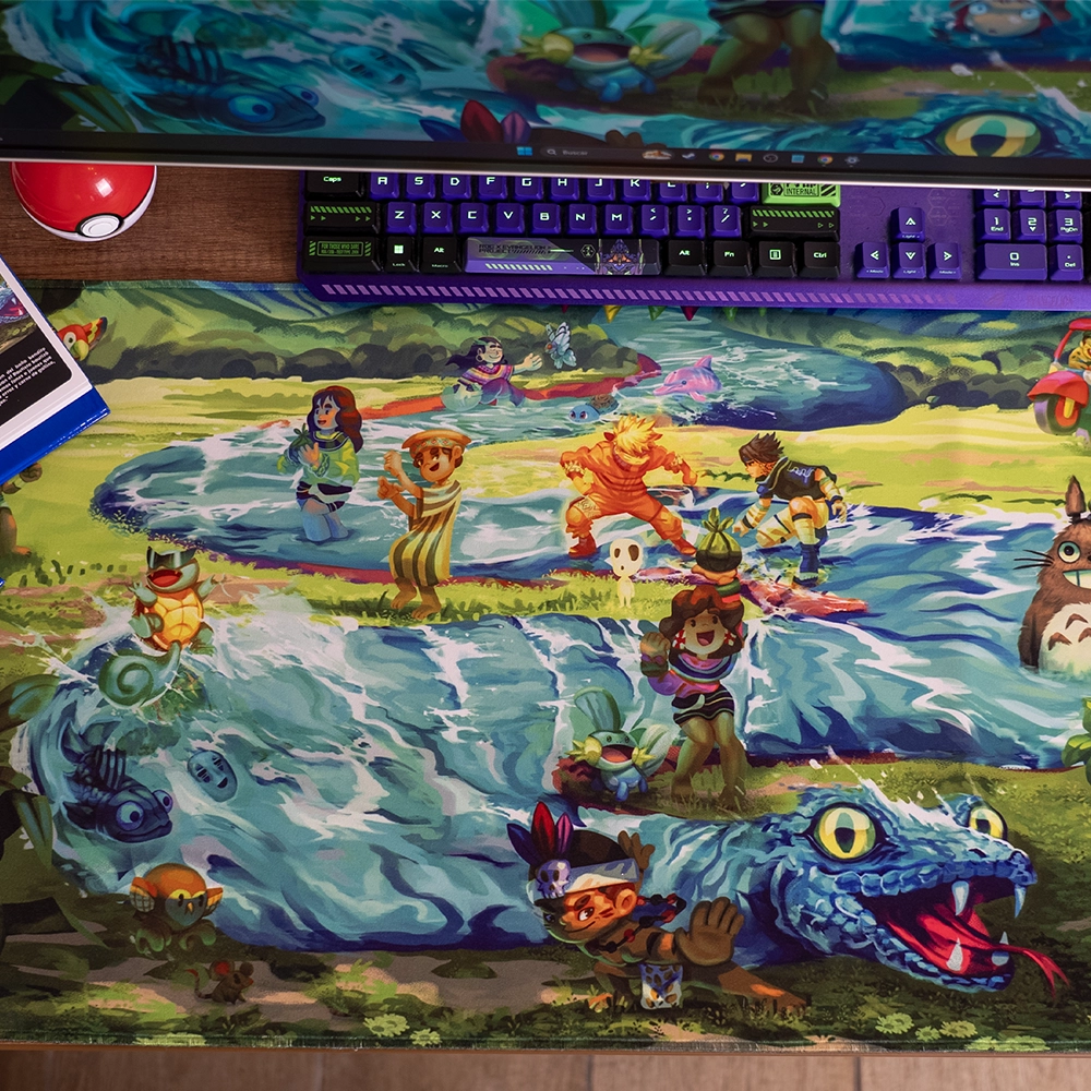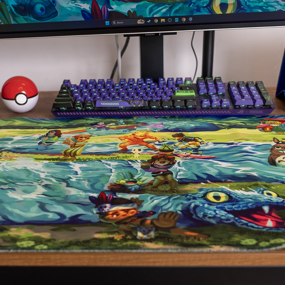 Mousepad gamer XL de 90x40cm con borde cosido, sublimado en neopreno textil antideslizante. Ilustrado por el gran Jordilustra como homenaje a la Fiesta de San Juan.