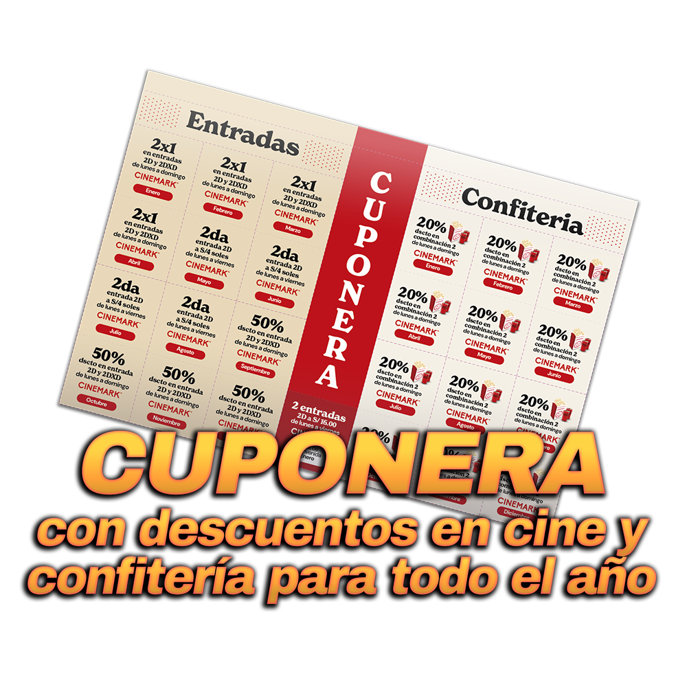 1 Cuponera con descuentos para el cine y confitería de Cinemark para todo el año